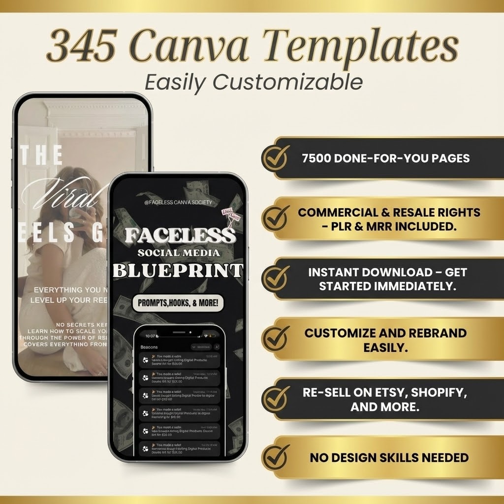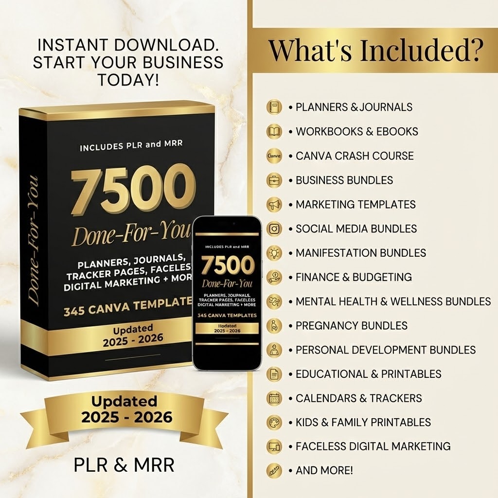 Fast-track your path to passive income with this massive collection of over 7,500 pages across 345 premium Canva templates. This is more than just a bundle; it is a “business-in-a-box” designed to help you launch or scale effortlessly in 2025 and 2026.